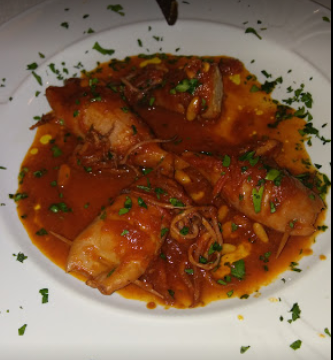 Polpo*rosticciato su crema di cipolla tropea